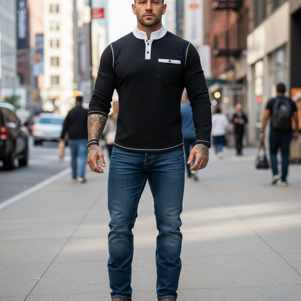 • Design Elements: Clean Lines, Minimalist Pocket Detail, Contrasting Trim Accents