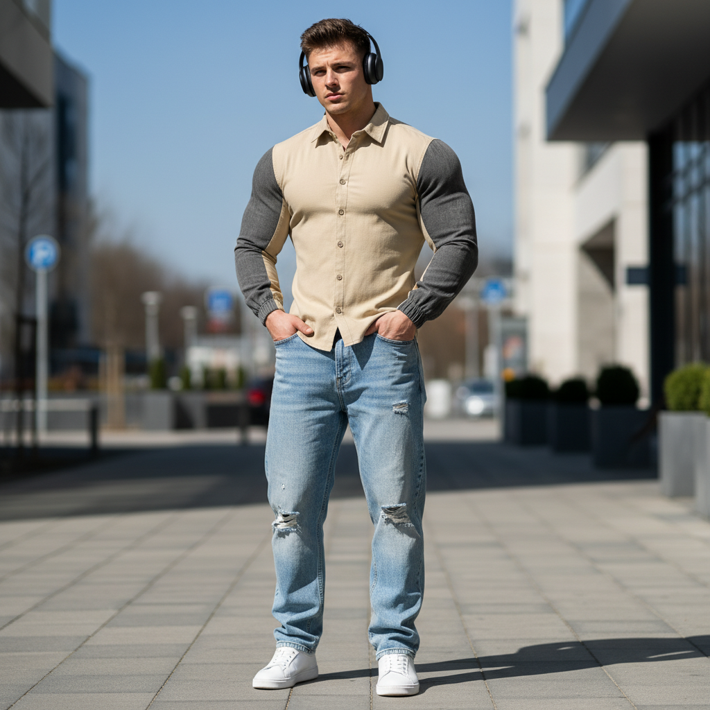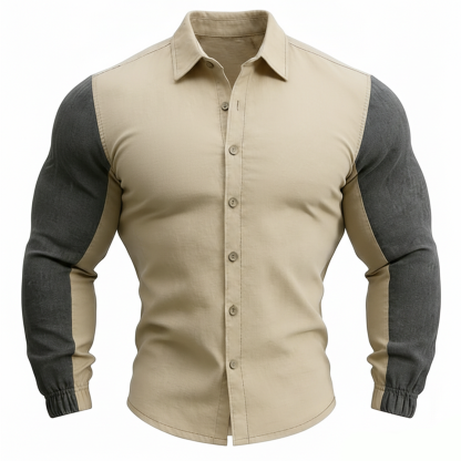 Men's Khaki Workwear Style Color Block Long Sleeve Button-Down Shirt