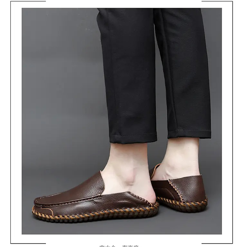 Men's Retro Genuine Leather Driving Hiking Outdoor Tendon Sole Handmade Casual Shoes